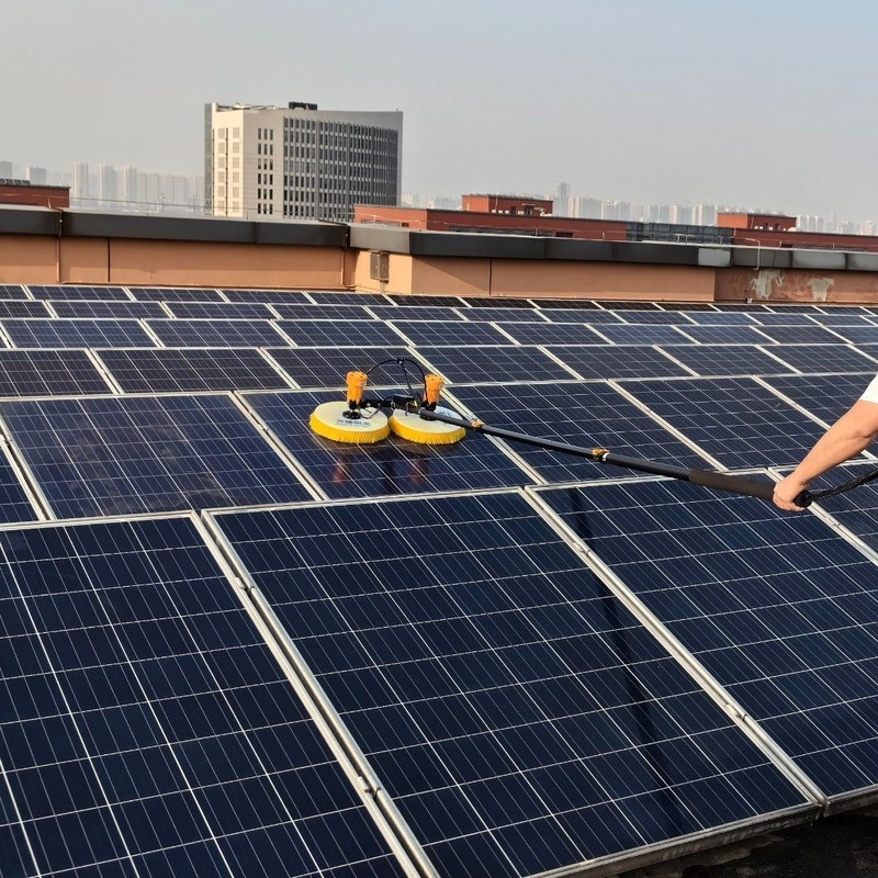 Outil de nettoyage des murs en verre Machine de nettoyage des panneaux solaires Système de nettoyage des fermes photovoltaïques Pinceau électrique à double rotation